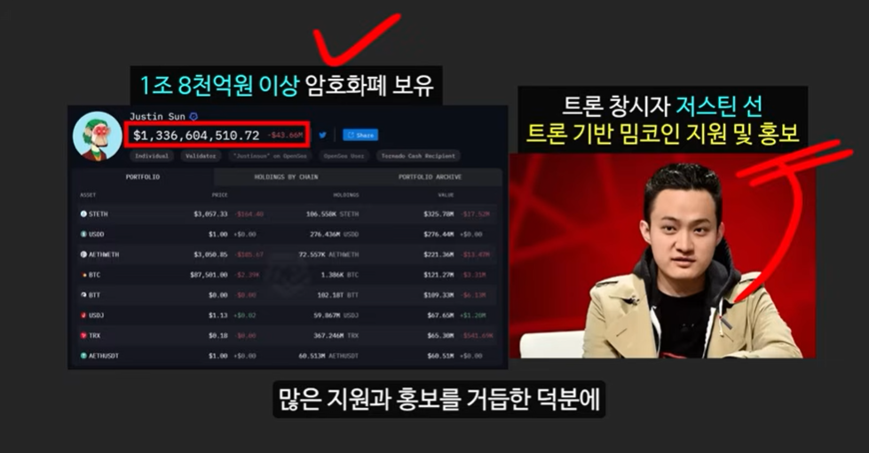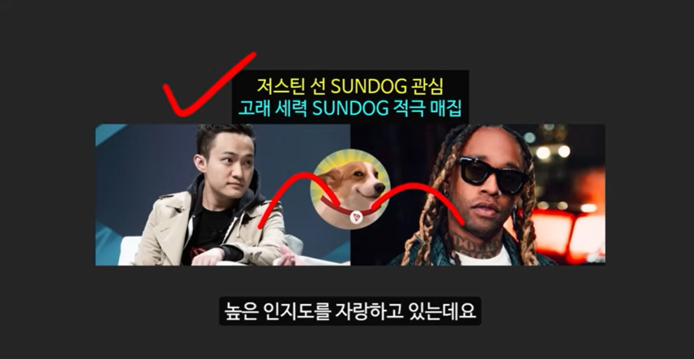 - 저스틴 선의 지원: 저스틴 선은 트위터와 여러 인터뷰를 통해 썬도그 코인에 대한 지지를 드러내며 투자자들의 관심을 모았습니다. 특히, 유명 래퍼 타이 달라 사인이 썬도그 코인을 매수한 이후 실수로 전량 소각하게 된 사건도 주목을 받았습니다. 저스틴 선은 이를 보상하기 위해 본인 돈으로 트론을 전송해주었으며, 이 사건은 썬도그 코인의 신뢰도와 인지도를 더욱 높였습니다.