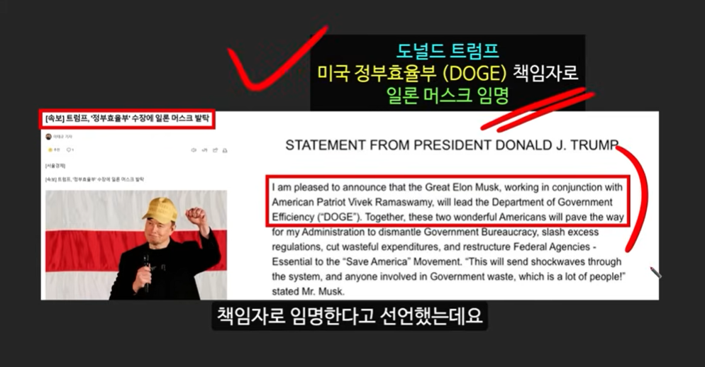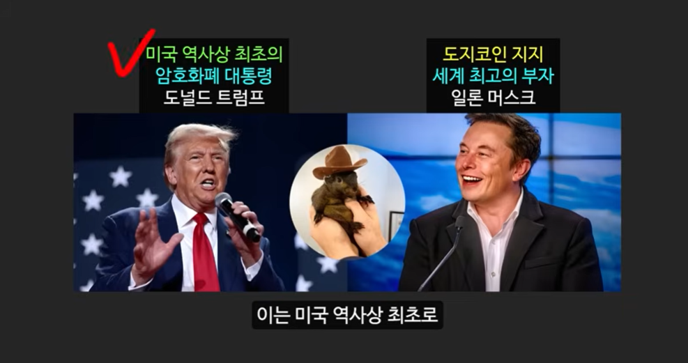 - 정부 효율화 부서와의 상징성: 도지코인은 미국 정부의 '정부 효율화 부서'와 연결되며 다시 한 번 주목받았습니다. 트럼프 대통령과 일론 머스크의 행보로 인해 도지코인이 이 부서의 상징이 되면서 더 많은 투자자들의 관심을 끌게 되었습니다.