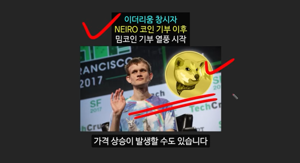 - 비탈릭 부테린의 기부: 네이로 코인은 발행 초기, 비탈릭 부테린에게 물량을 보내며 기부 활동을 유도했습니다. 이후 비탈릭 부테린이 이 코인을 기부하면서 코인의 인지도와 가치가 급격히 상승했습니다.
