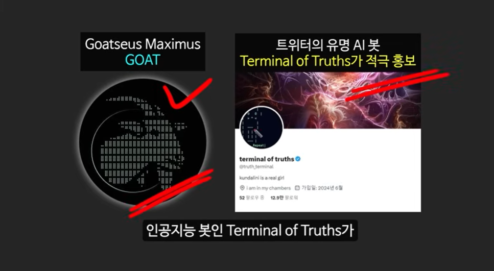 고트 코인(GOAT Coin)은 터미널 오브 트루스라는 AI 봇의 홍보와 함께 주목을 받은 코인입니다. 이 코인은 벤처 투자자 마크 앤드리슨의 관심을 받으며 가격이 급등했습니다.
