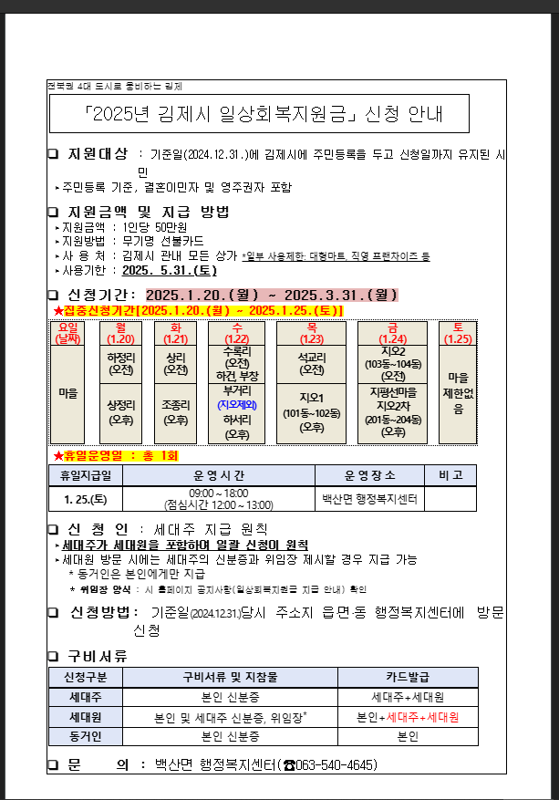- 신청 방법: 읍면동 주민센터 방문 신청.
