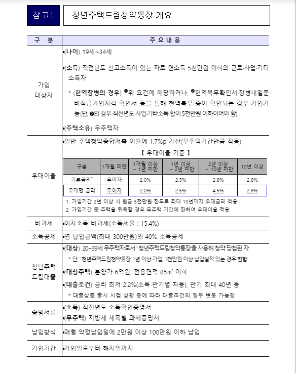 - 기존 ‘청년 우대형 청약통장’의 업그레이드 버전