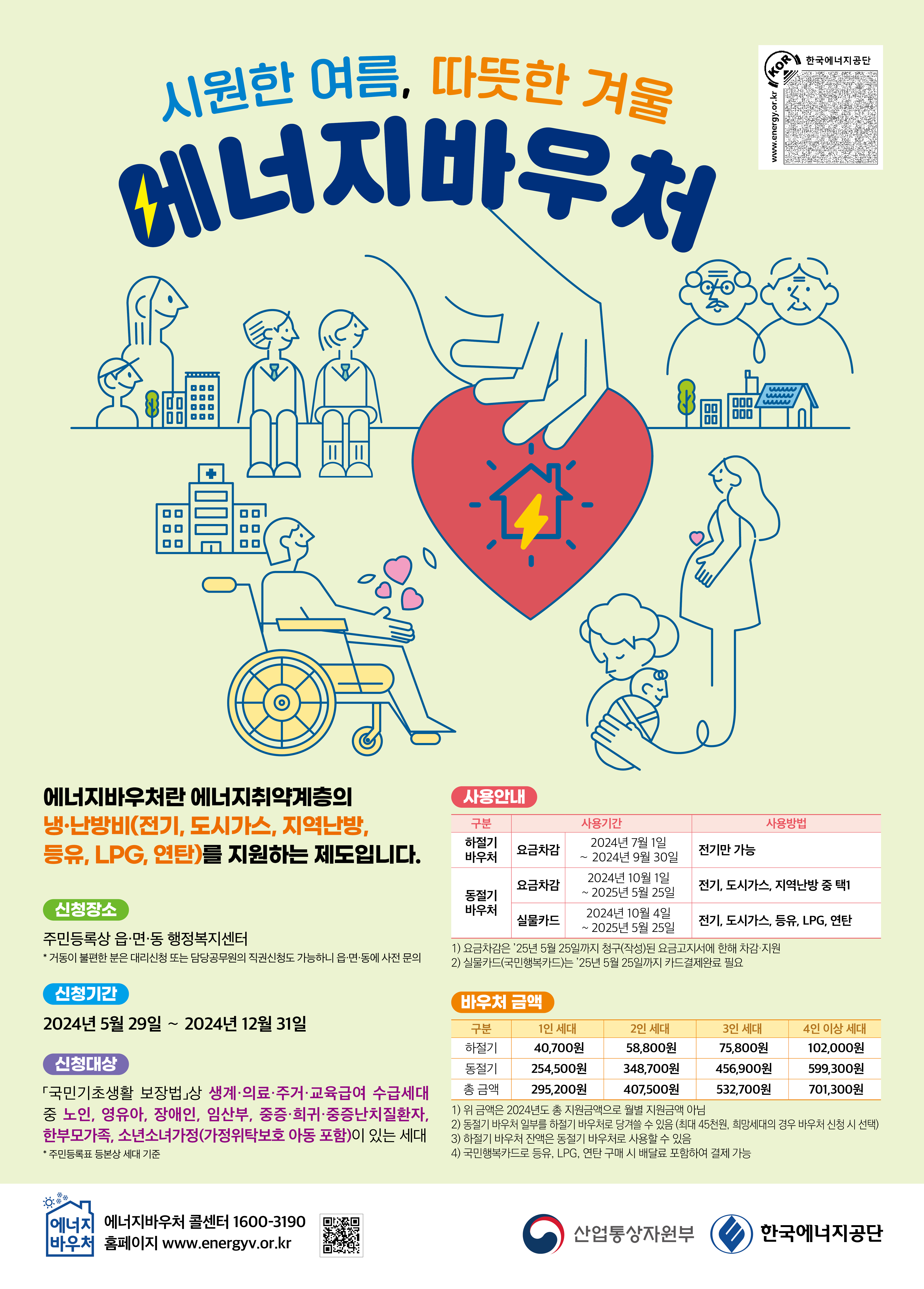 이번 여름과 겨울, 에너지바우처를 통해 에너지 비용을 절감하고 건강하고 쾌적한 생활을 누리시길 바랍니다.